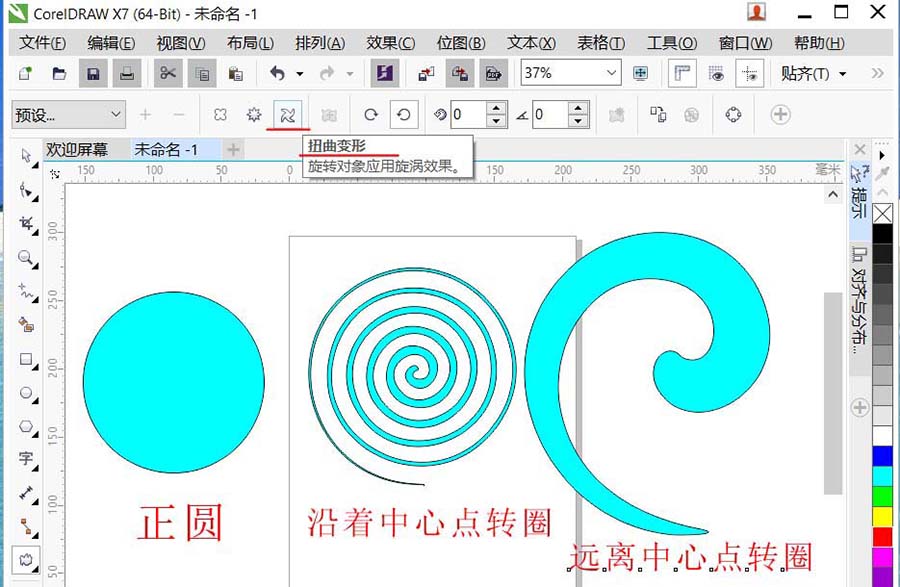 8、同样的步骤,变形工具选择第三种——扭曲变形,沿着中心点转圈,离点越近越密集,越远越大