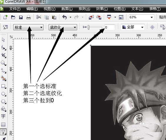 3、将左上角的第一个选项选择标准,第二个选择底纹化,然后将透明度调到0(去掉透明效果),就ok了。