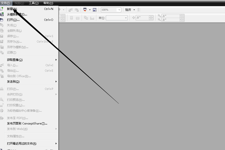 1、首先,我们先打开cdr,然后选择新建,