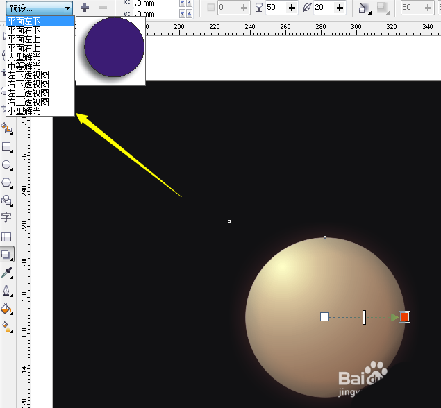 9、点击预设后面工具中的(羽化方向)选择向外