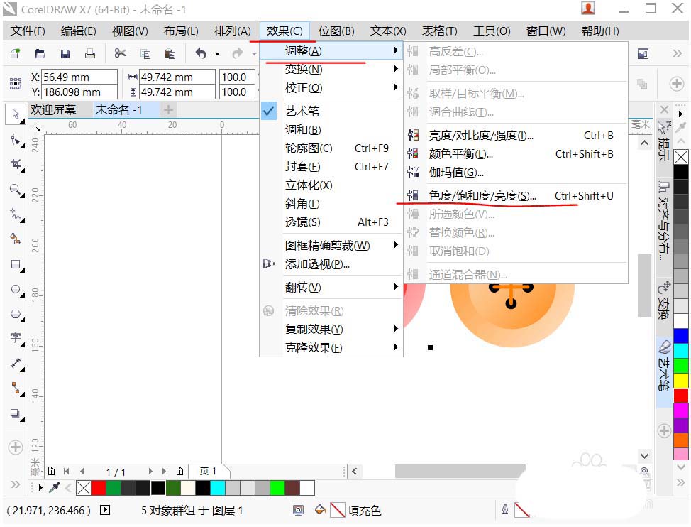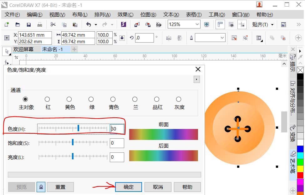 7、复制一个纽扣,执行效果——调整——色度/饱和度/亮度,