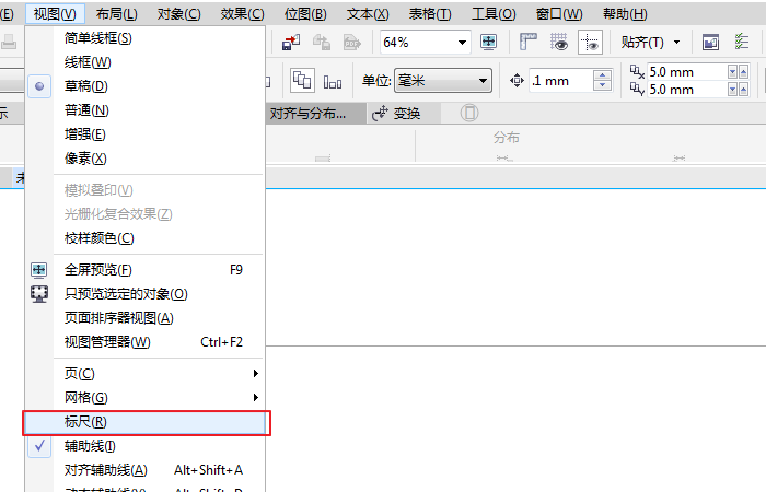 1、我们在cdr软件中,可以在"视图"里点击标尺让它显示出来(如果显示了点击它就是关闭),如图所示;