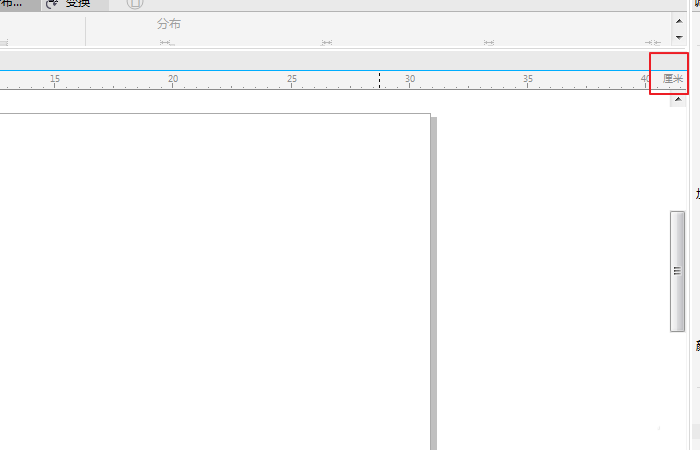 4、我们回到绘图窗口可以发现标尺上的单位显示为"厘米",如图所示;