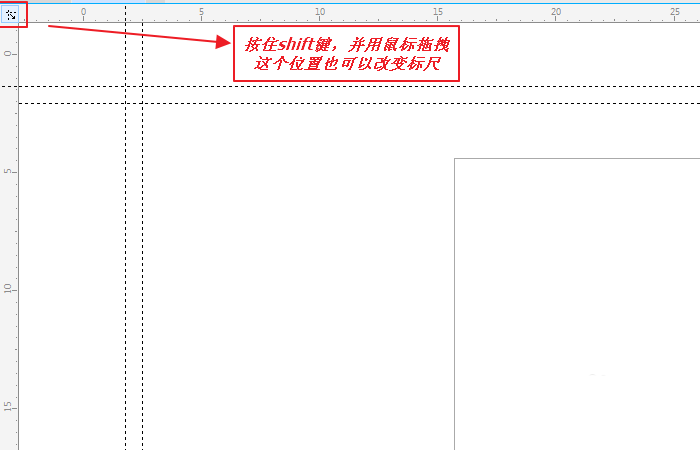 5、鼠标点击左上角并按shift键,就可以拖拽标尺的起点位置,如图所示;