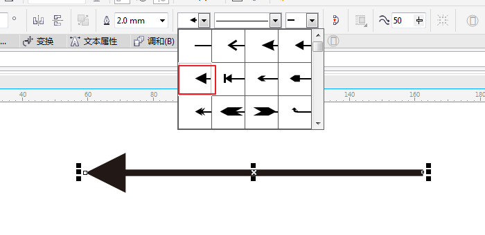 4、我们可以点开线宽旁边的下拉框,选择一种箭头样式,如图所示;