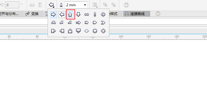 7、在cdr里也可以画空心箭头,我们在工具栏找到"箭头形状",然后选择一种箭头样式,就可以画出空心箭头,如图所示;