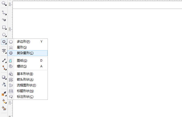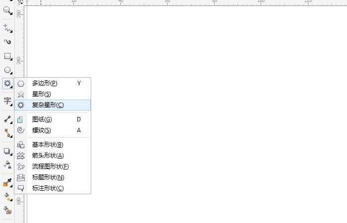 1、我们打开cdr软件,在左侧工具栏选择"复杂星形"工具,如图所示;