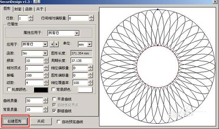 5、防伪花纹已经生成了,点创建图形,然后点关闭