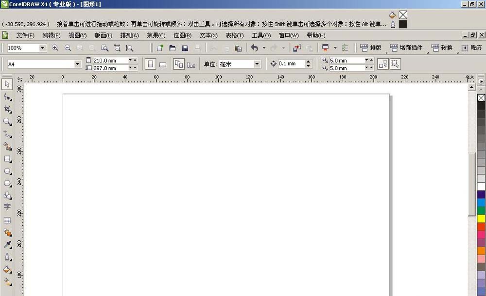 1、打开CDR软件,整个软件布局是这样的,看一看左侧是有工具栏的