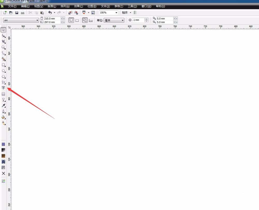 1、首先打开我们的CDR软件,新建文本,设置尺寸为A4,然后选择我们的文字工具,用鼠标左键拖动,可以拖动出一个文本框,我们就可以在这个框里直接输入我们的文字。可以设置文字大小和字体等