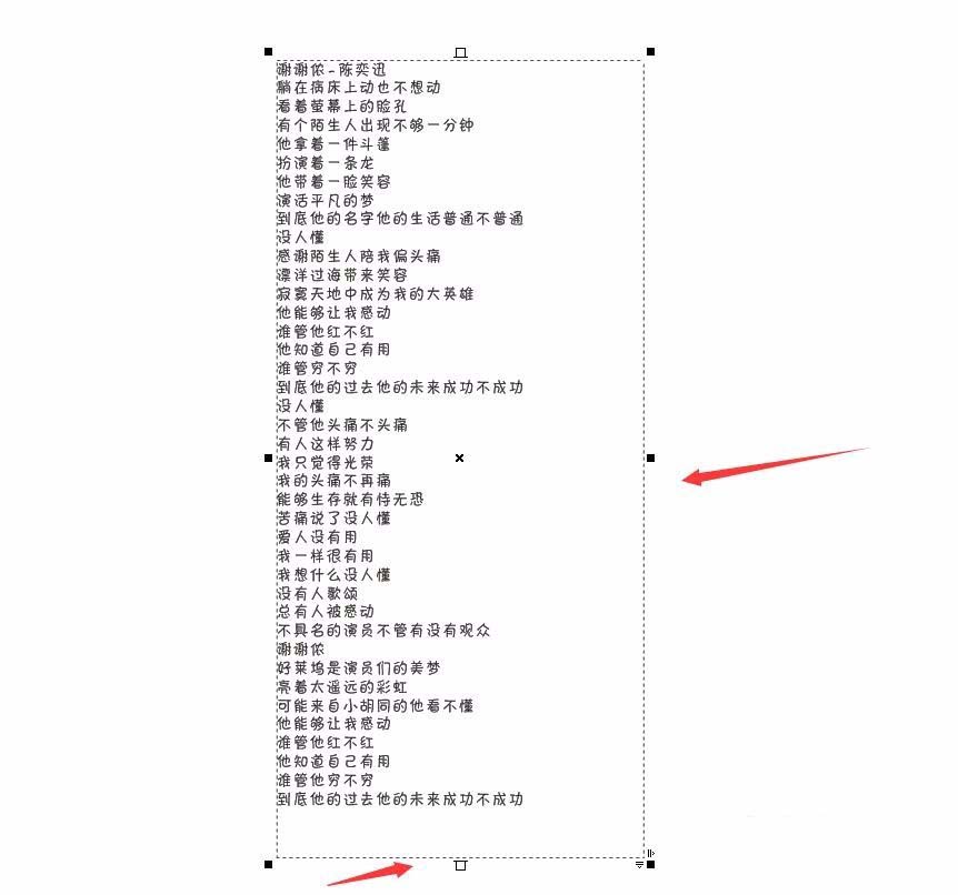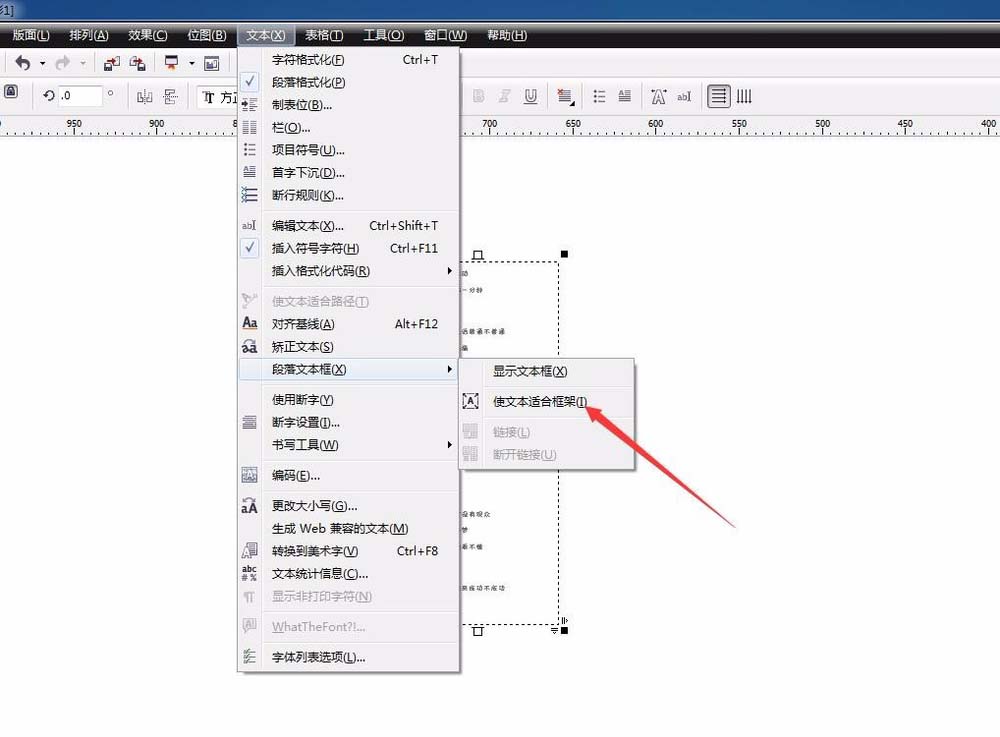 5、我们还有一种快速排版的方法,在段落文本框中,有一个适合文本框的命令,这个有什么用呢。比如我们的文本框适合多大的位置,我们就可以拖动多大的文本框,当我们把文字打上去之后,点击适合文本框,文字自动调整文字大小,让所有的文字排在这个文本框里