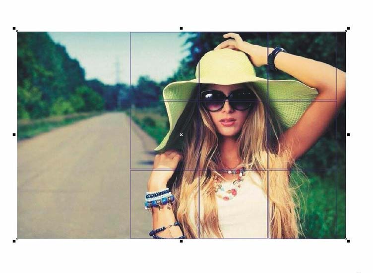 5、选中图片,放置在容器中。将我们的图片精确剪裁进九个小方格中,然后编辑图片的大小,让照片最美的部位完全显示出来,保证九个小方格中都有内容,不要出现有百边的现象