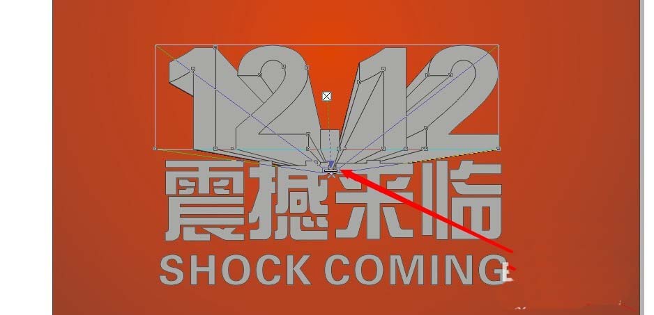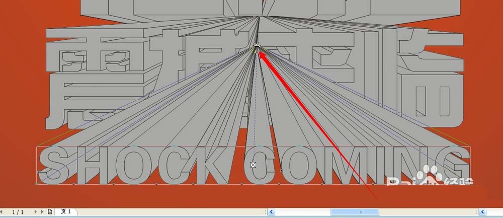 5、用鼠标拖动拉出立体化效果,把灭点位置放在震撼来临的上边.我们要做的立体化效果是从小到大延伸出来的,所以灭点的选择很重要,将滑块拖到最下面的一个点上,就会有这种放射处理的效果了。