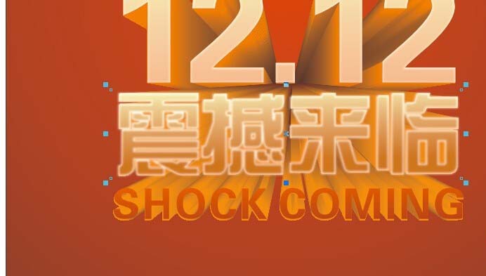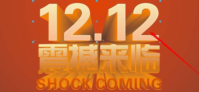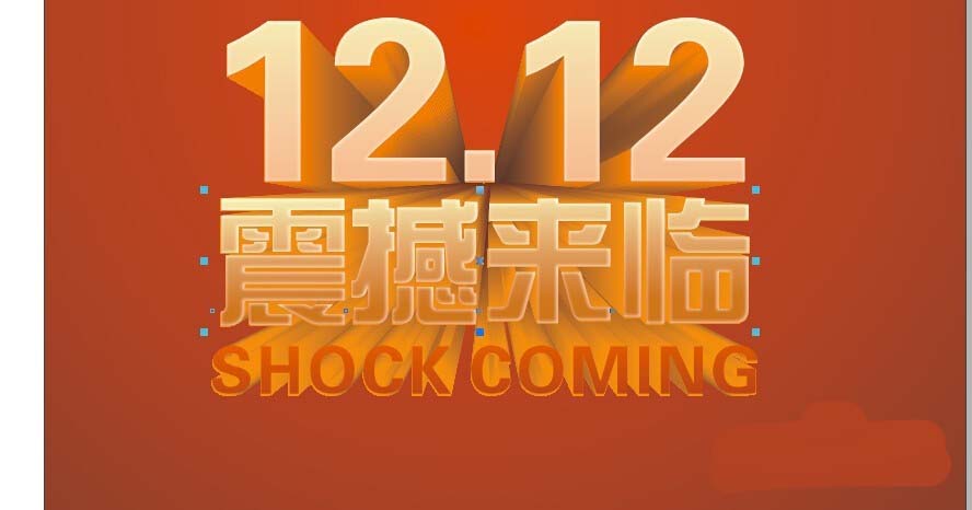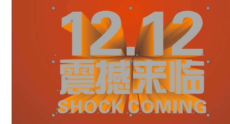 9、给表层的文字添加渐变色.还是不够?我们可以单独的给最上面的一层文字填充颜色。选择最上面的一层文字,不要选择立体化的文字,然后直接填充渐变色,这样文字的颜色就改变了,而立体化颜色则没有变
