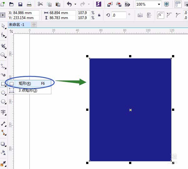 1、用“矩形工具”画出矩形,单击右击“调色板”填充蓝色,如图所示: