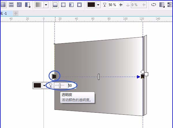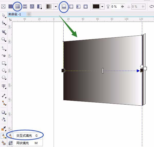 3、框选两个矩形,按快捷键Ctrl+G组合对象,用“交互式填充工具”,属性栏中如图设置,再改透明度。