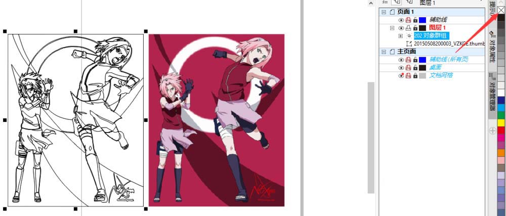 5、单击右上角的“无色”,将图片填充色清除,一张图片转线稿就这么完成了!