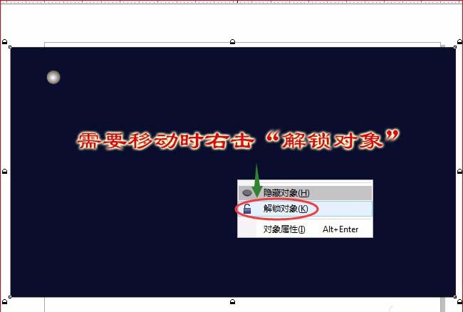 2、按“空格键”切换为“选择工具”,选定矩形右击选“锁定对象”这样矩形就移不动,需要移动时右击“解锁对象”。如图: