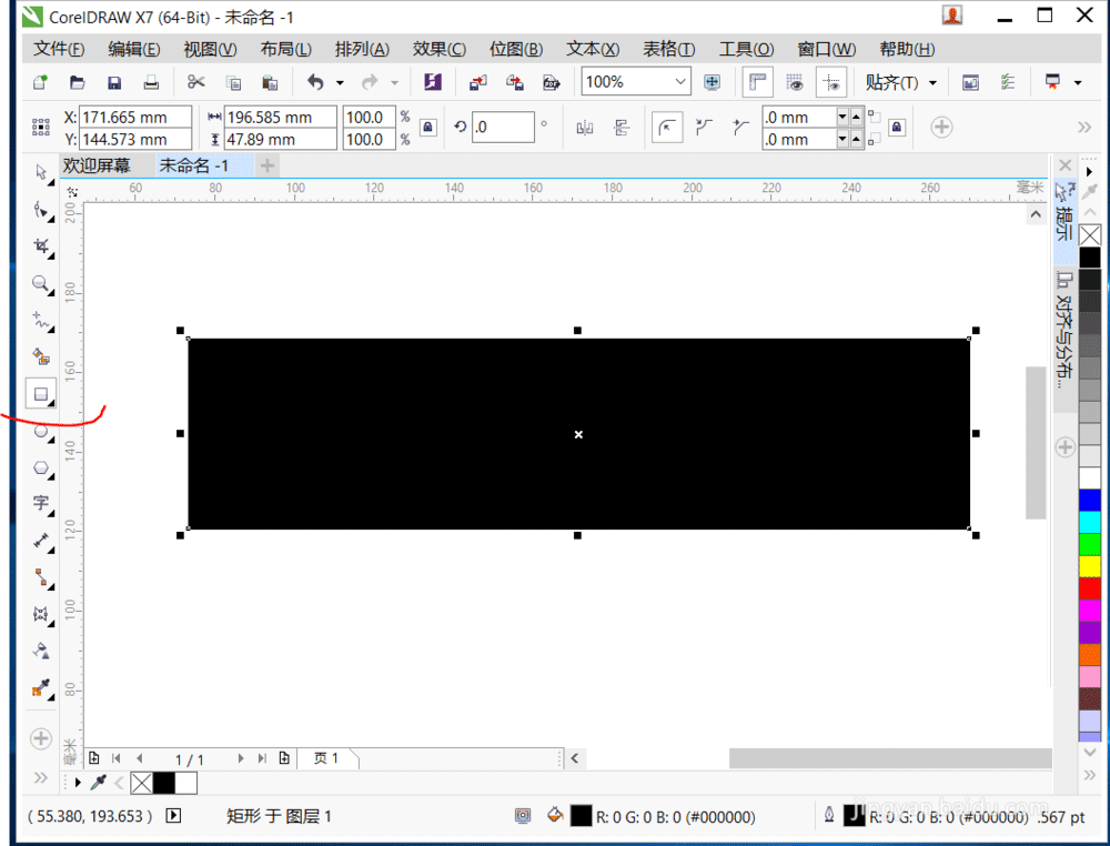 1、新建文档,选择矩形工具绘制一个长矩形,填充黑色