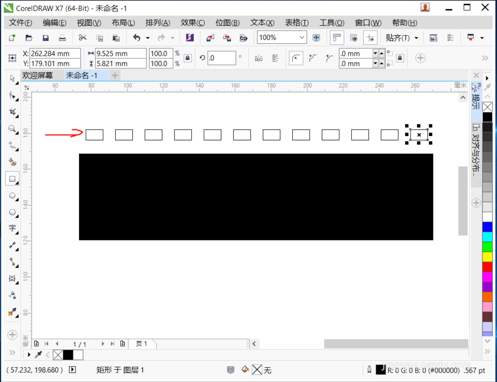 2、同样用矩形工具绘制一个合适大小的小矩形,水平移动一定距离复制一个矩形,按Ctrl+D,再制多个矩形