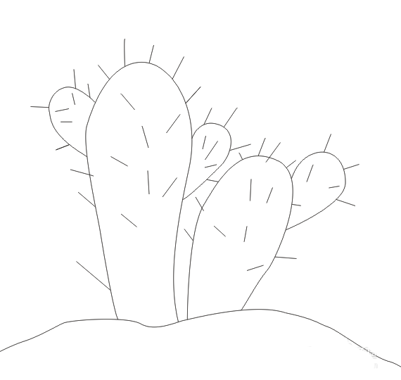 5、再在仙人掌的主干上画出小的仙人掌,如图所示: