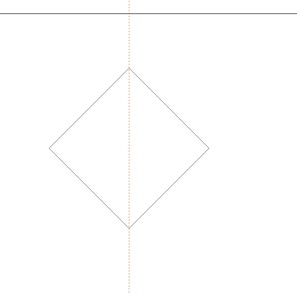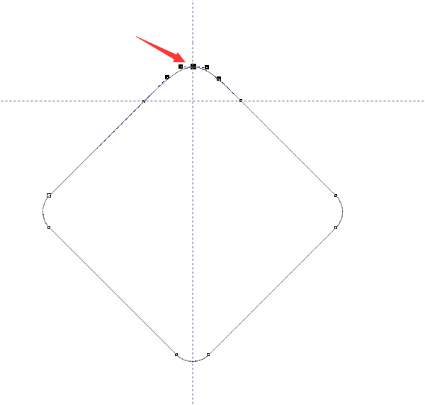 11、在棱形上边与垂直辅助线相交的位置,双击一下,添加一个节点。