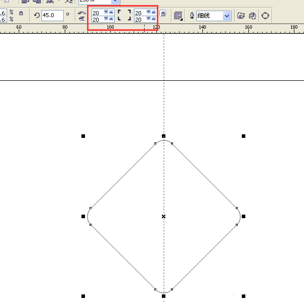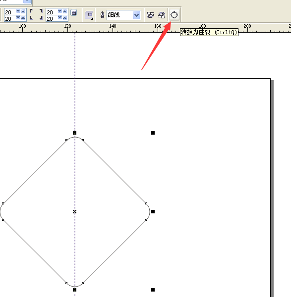 6、点击属性栏的“转换为曲线”的按键,将棱形转换为曲线。