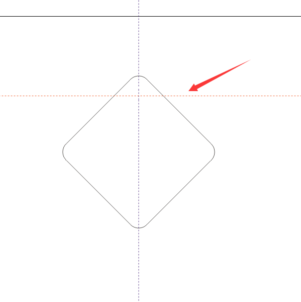 7、从软件的上边的标尺位置拉出一条辅助线来,将辅助线拉到比棱形上边的角低一些的位置。
