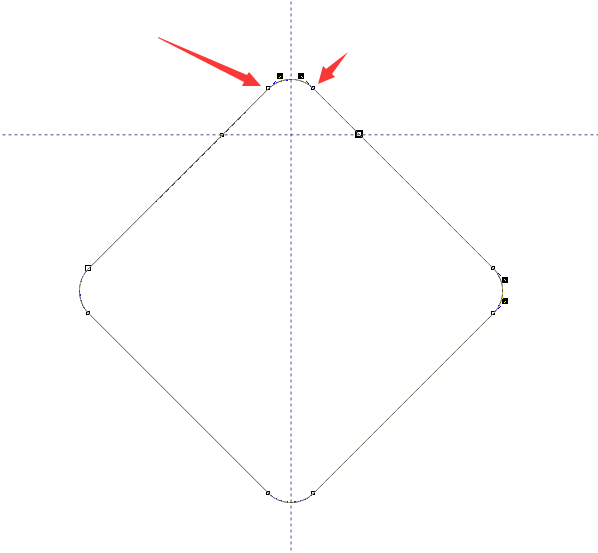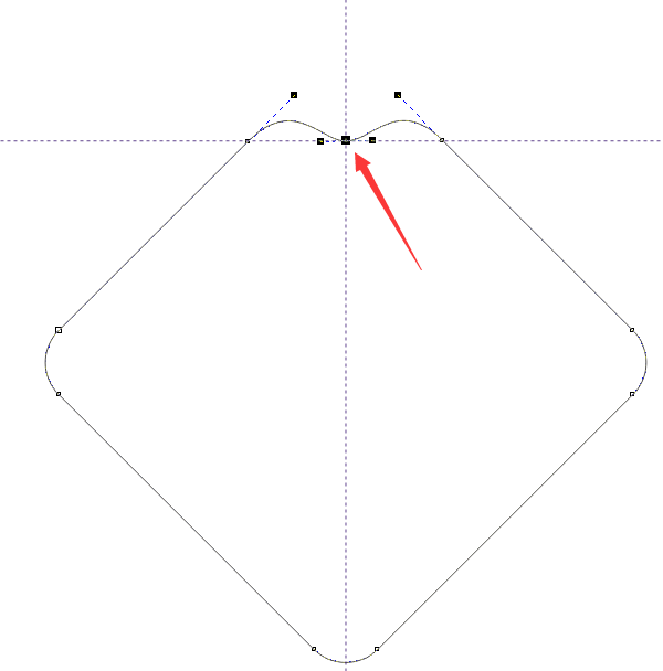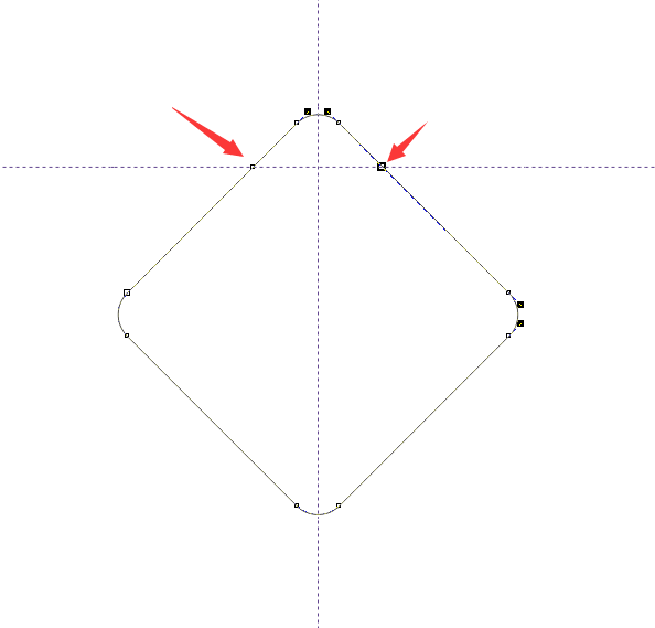 9、在水平辅助线和棱形交接的地方用鼠标双击,在棱形上添加两个节点。