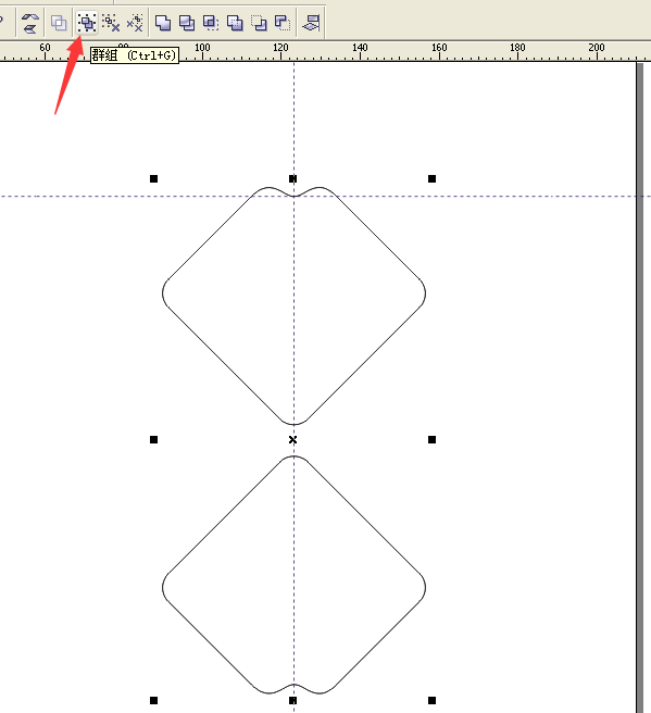 25、将所有图形都选择上,再点击属性栏的“群组”按键,将图形进行群组。