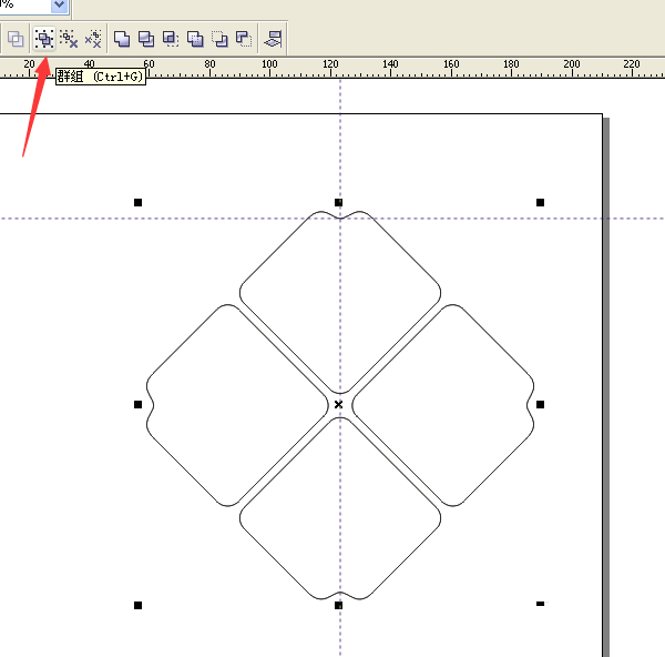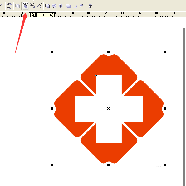 17、将所有图形都选择上,再点击属性栏的“群组”按键,将图形进行群组。