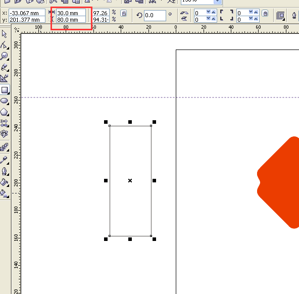 18、选择矩形工具,画出一个宽度为30mm,高度为80mm的长方形。