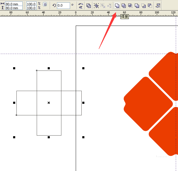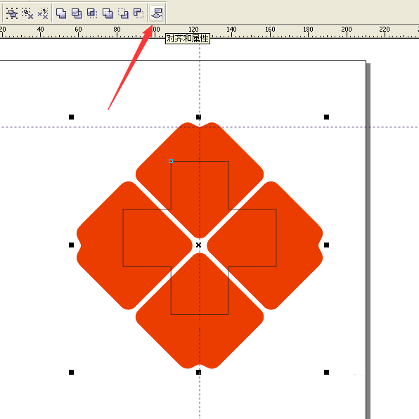 21、将焊接得到的十字形放在四个棱形的上面,再点击上边属性栏的”对齐和属性“按键。