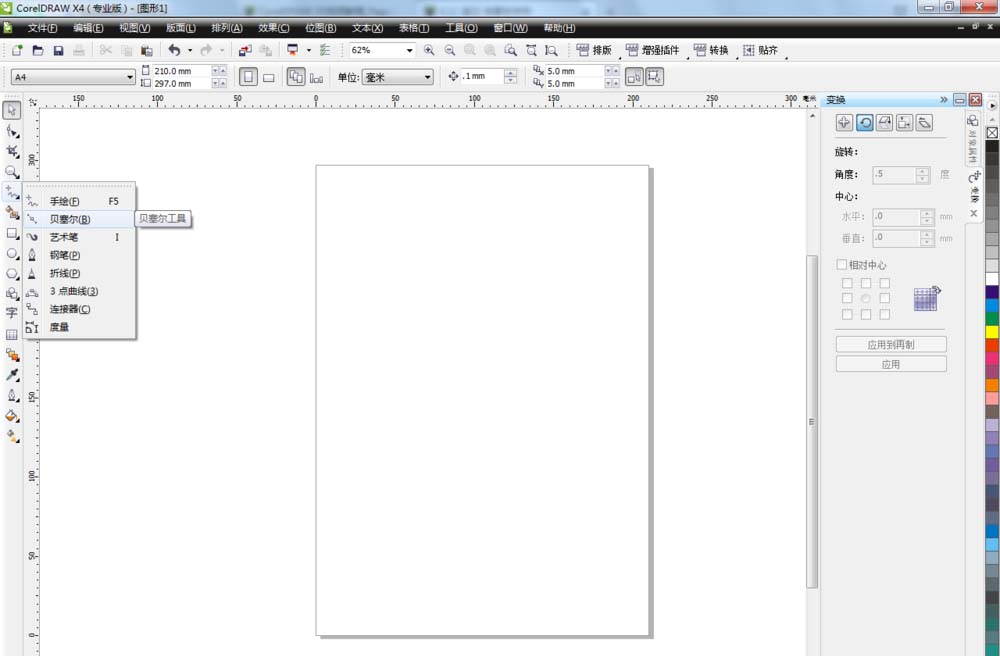 1、打开软件单击贝塞尔工具,画一条曲线并调整好位置和大小。