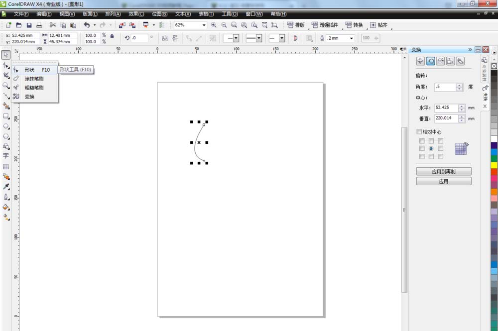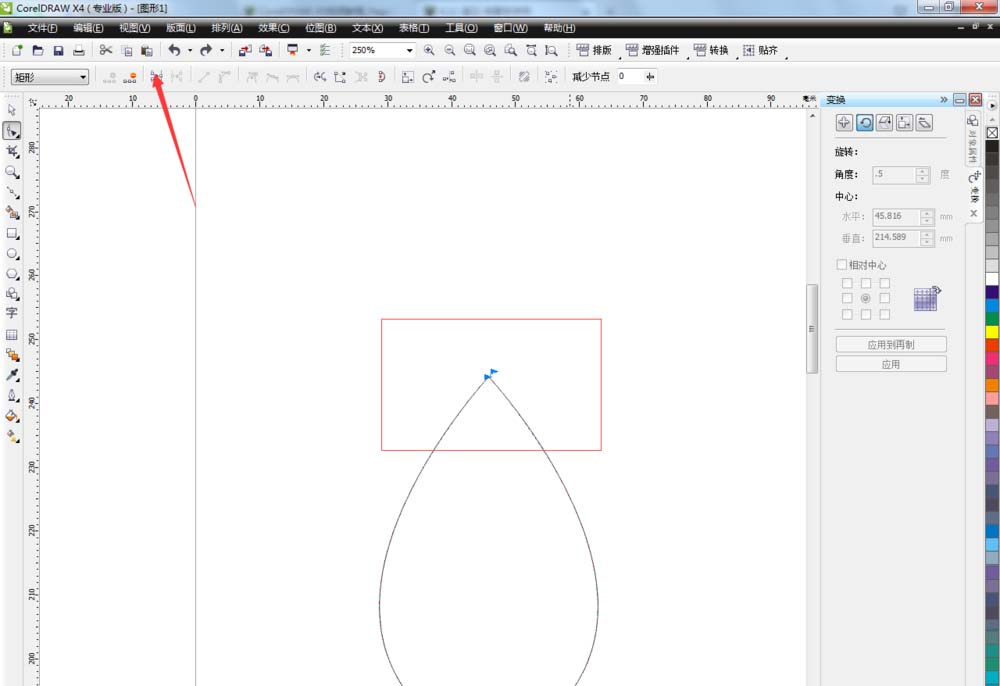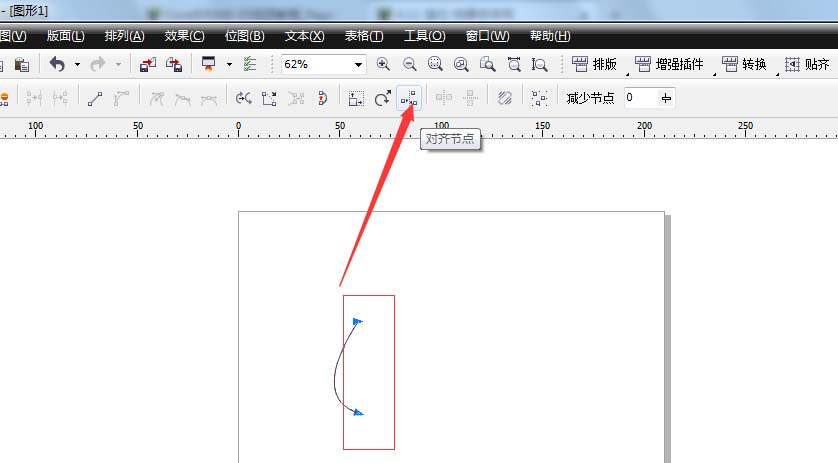 2、调整好完成单击形状工具选择两个节点,单击对其节点,节点对齐以后单击选择工具选择曲线并复制一个。