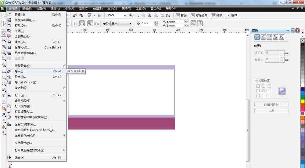 4、设置完成,单击文件——导入命令,导入需要的文字或图片,调整好位置和大小。