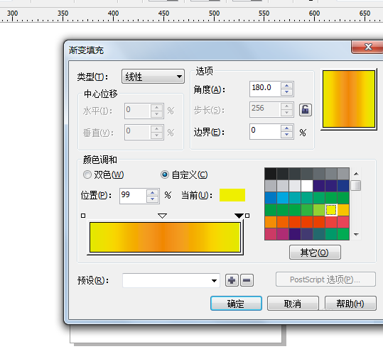 1、打开CorelDRAW,绘制一个闭合路径,然后线性渐变,角度180度,最后填充颜色。