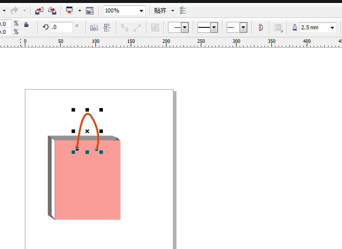 4、使用贝塞尔工具绘制曲线,做手提袋绳子,加粗调颜色。