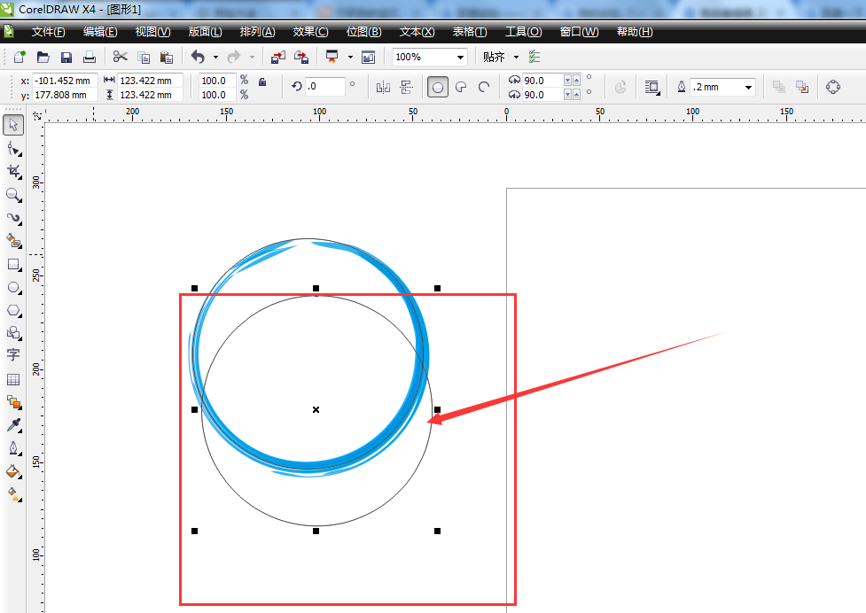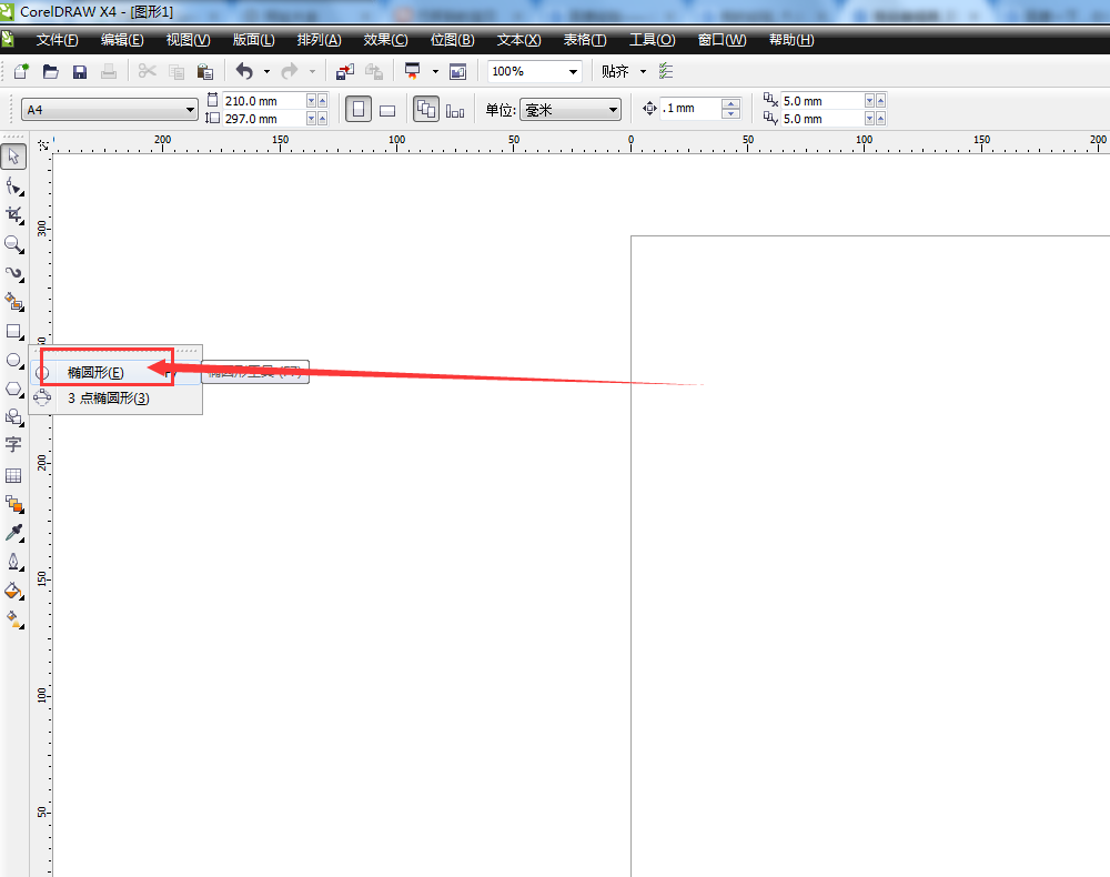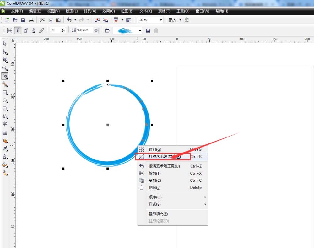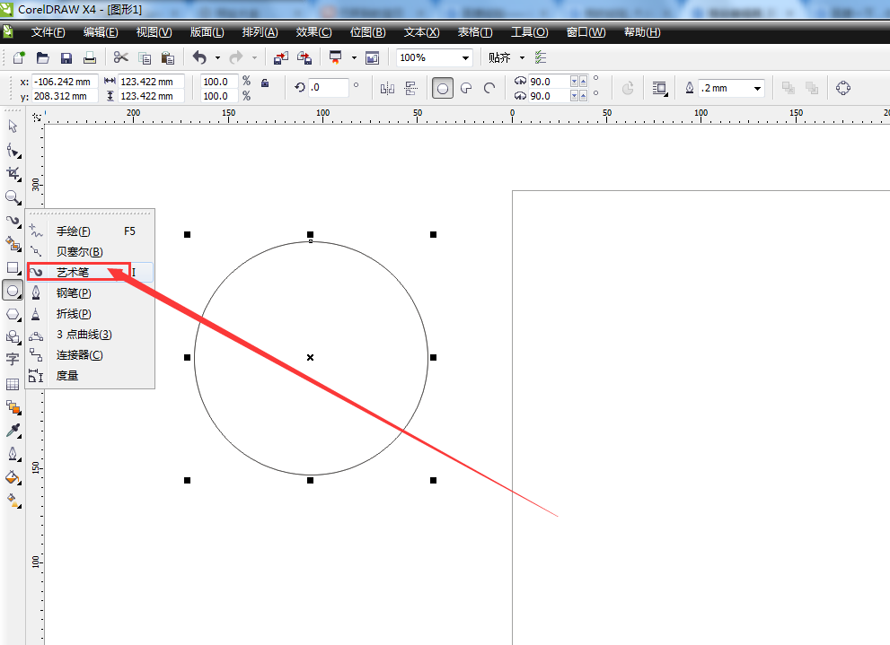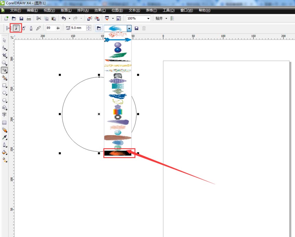 3、选中椭圆的状态下,找到艺术笔工具,如图,