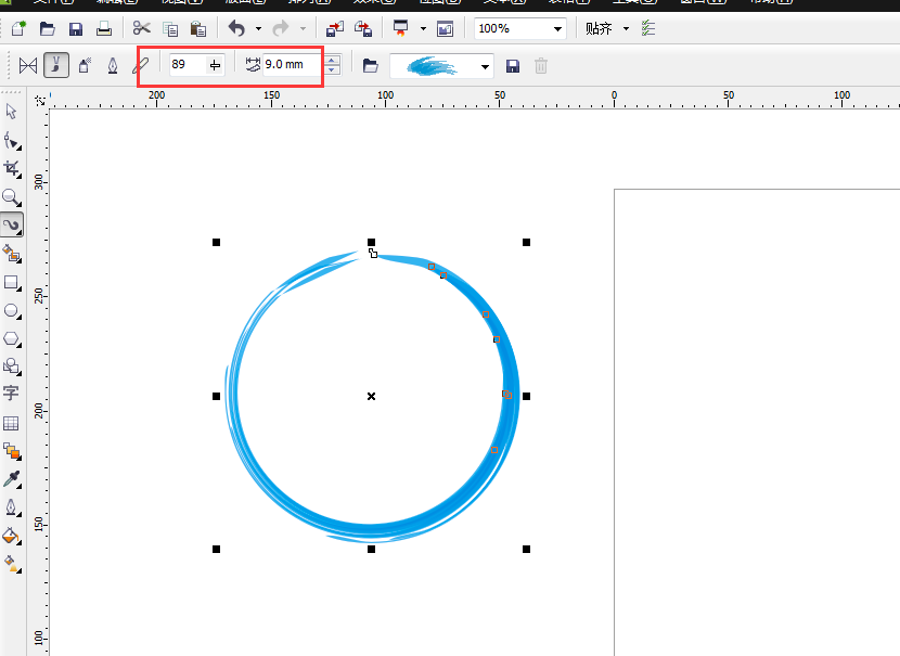 5、圆形的线框变为笔刷的形状,可以根据效果调整数值,如图,