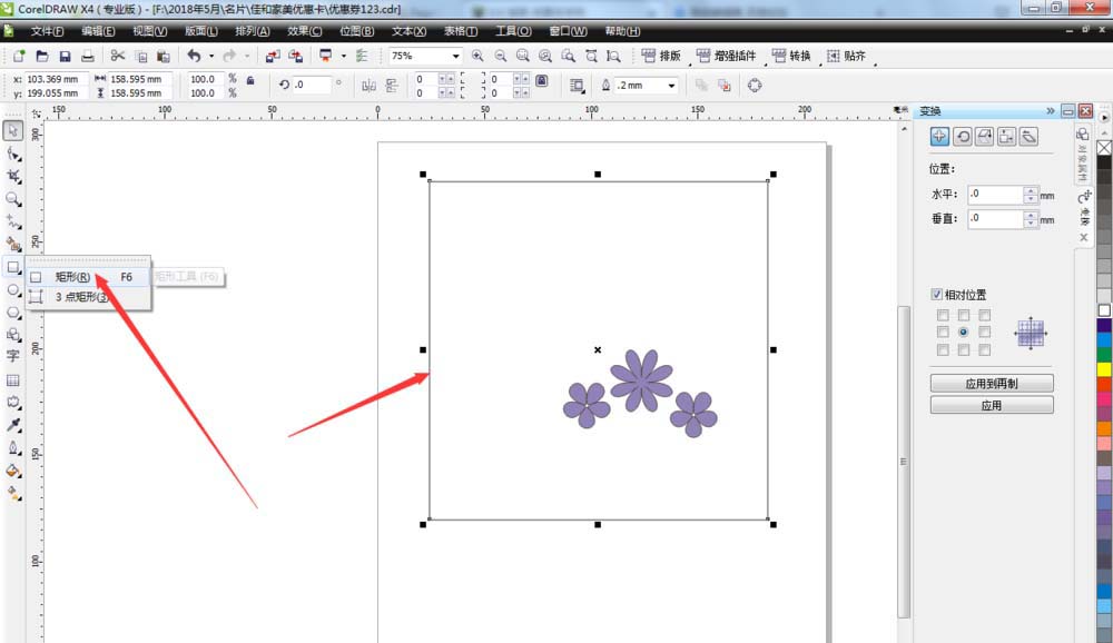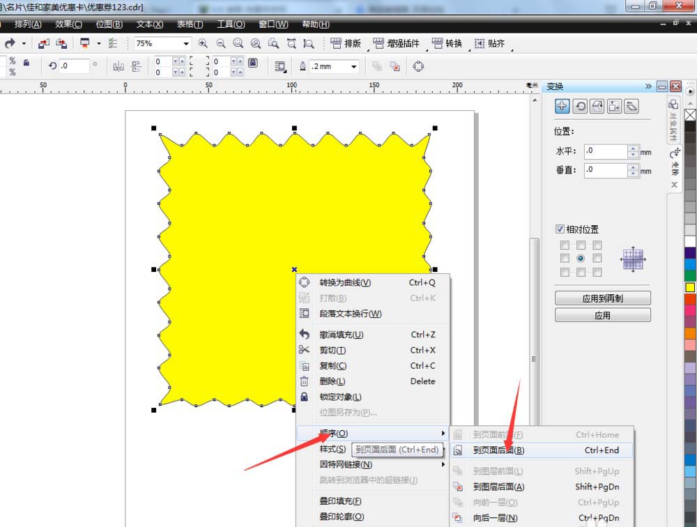 7、画好矩形填充颜色右键单击选择顺序,到页后面,在右键去掉轮廓并把轮廓颜色设置为红色,轮廓宽度自行设置。