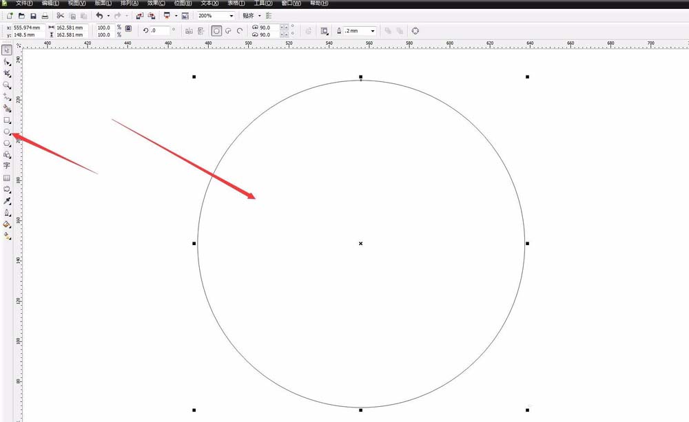 1、首先打开CDR软件,新建一个页面,尺寸根据自己的 需要设定。然后我用圆形工具绘制一个图形,按住CTRL键可以绘制一个正的圆形。我是通过圆形的样式来排版照片的