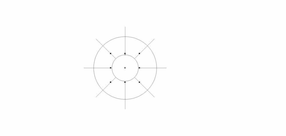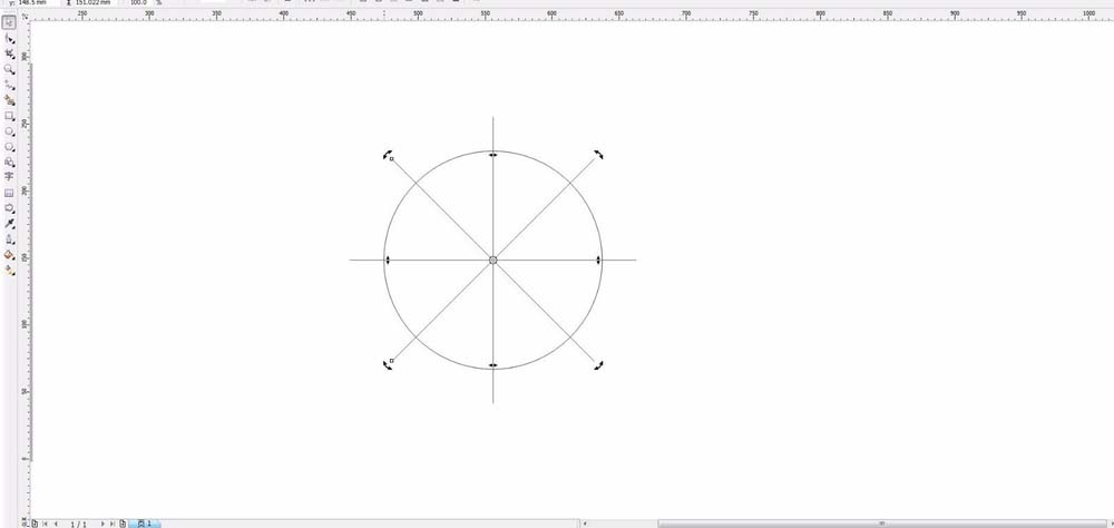 3、任何复制直线,将直线旋转90度,得到一个竖的直线。然后将这个竖的直线跟圆形执行一次水平居中。垂直居中对齐。快捷键是CE,加选再复制出两条线。
