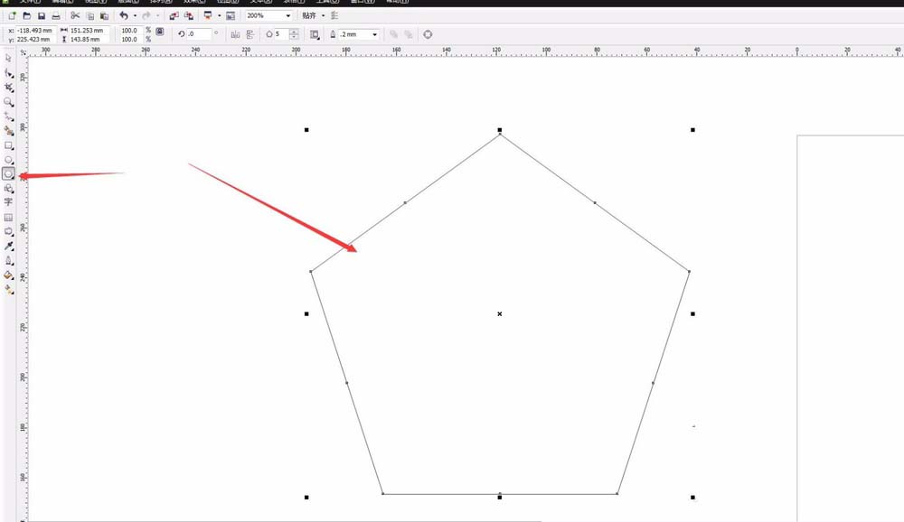 1、首先打开CDR软件,新建一个文件,尺寸任意设定,然后选择工具栏中的多边形工具绘制一个多边形。我这默认的是一个五边形,如图所示,在绘制的时候按住CDRL可以绘制一个正的五边形。