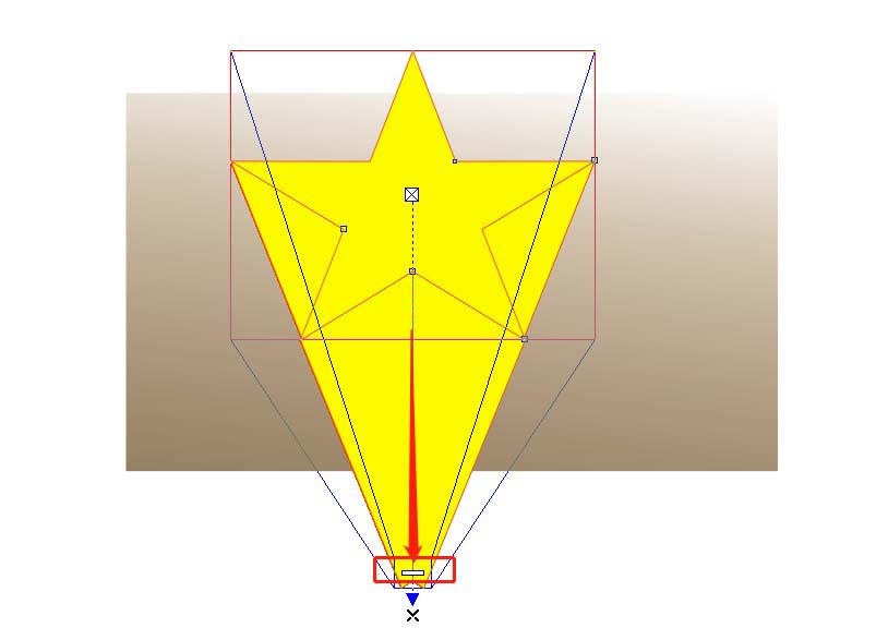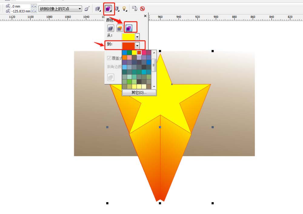 3、选择“立体化”工具,选择五角星中心,按住鼠标键向下拖动。