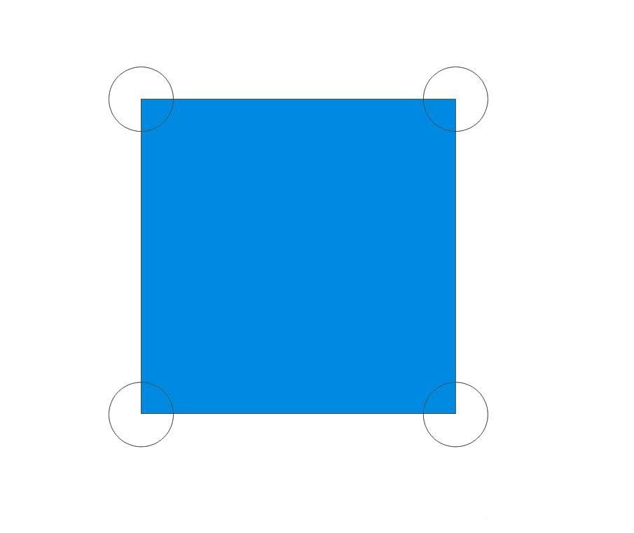 4、选择挑选工具,点击圆中心并拖动到方形边角,再复制三个圆形放到其它边角。