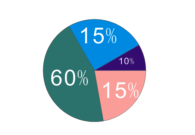 7、饼状图就做好了,我们在各个颜色不同的区域,输入需要的文字就可以了。如下图所示。