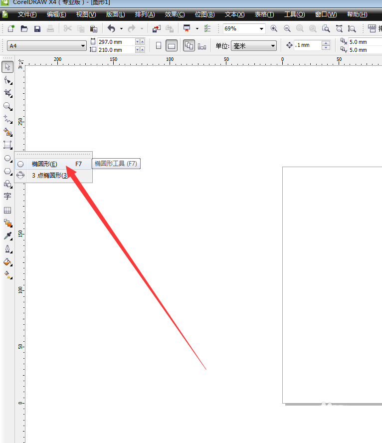 2、选择椭圆形,在文档中画一个椭圆,如下图所示。