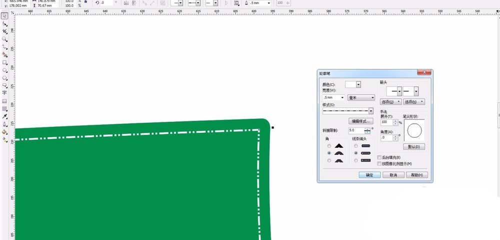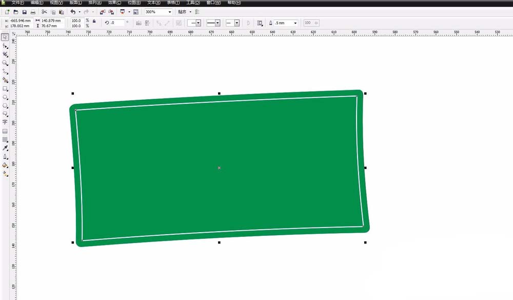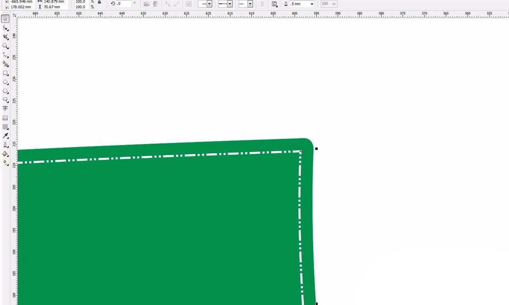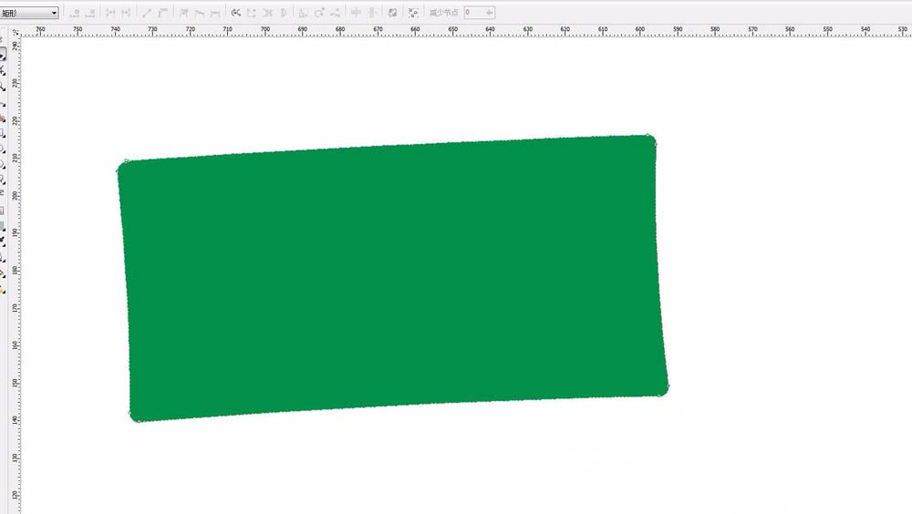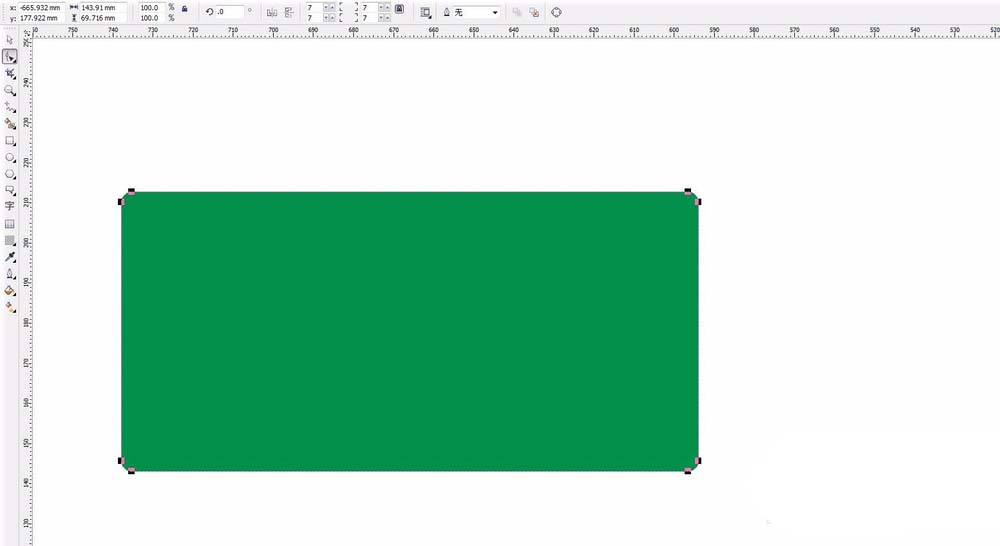 1、首先打开CDR软件,新建一个文件,尺寸可以任意设定。然后选择工具栏中的矩形工具,绘制一个矩形。并且填充一个颜色,我首先填充为绿色,方便观察。进行圆角出来