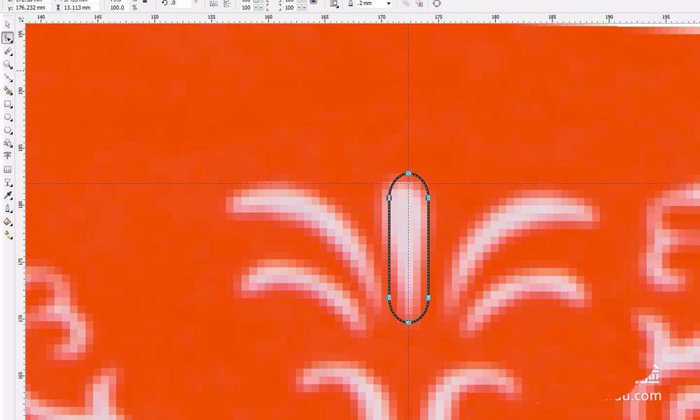 1、先不要急着去画,先调出辅助线,将花纹扭转成正的平行的状态。这样左右两边是完全对称的,那么就可以只画一边,然后复制一个过去就行了,会省很多的时间。
